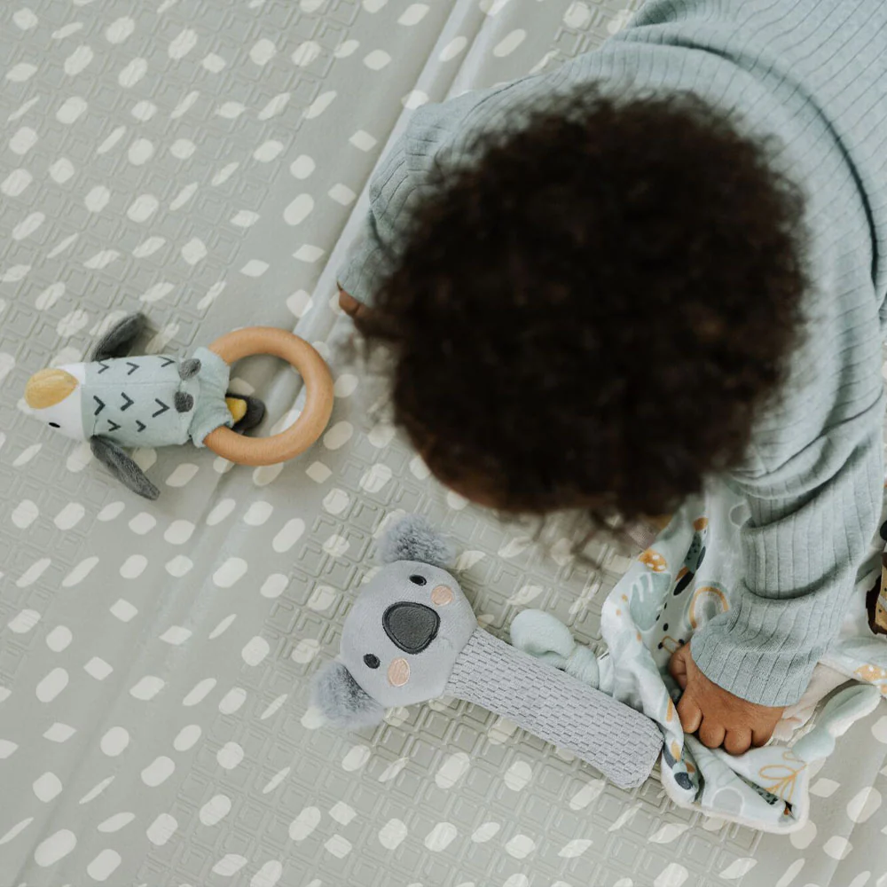 This first year’s baby gift includes a super soft comforter for your little one to snuggle into, a cute koala squeaker toy that will keep your little wriggler entertained for hours and an adorable wooden ring parrot rattle, perfect for when your little one is teething. The three-piece gift set comes packaged in a beautiful reusable keepsake box - a gift that keeps giving.