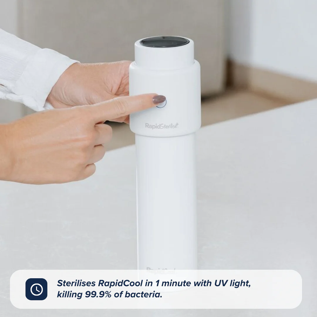 Sterilising your RapidCool has never been easier with RapidSterilise+. This compact powerhouse has up to 70 uses per charge and sterilises in just one minute killing 99.9% of bacteria, no water, no microwave, just pure UV magic.