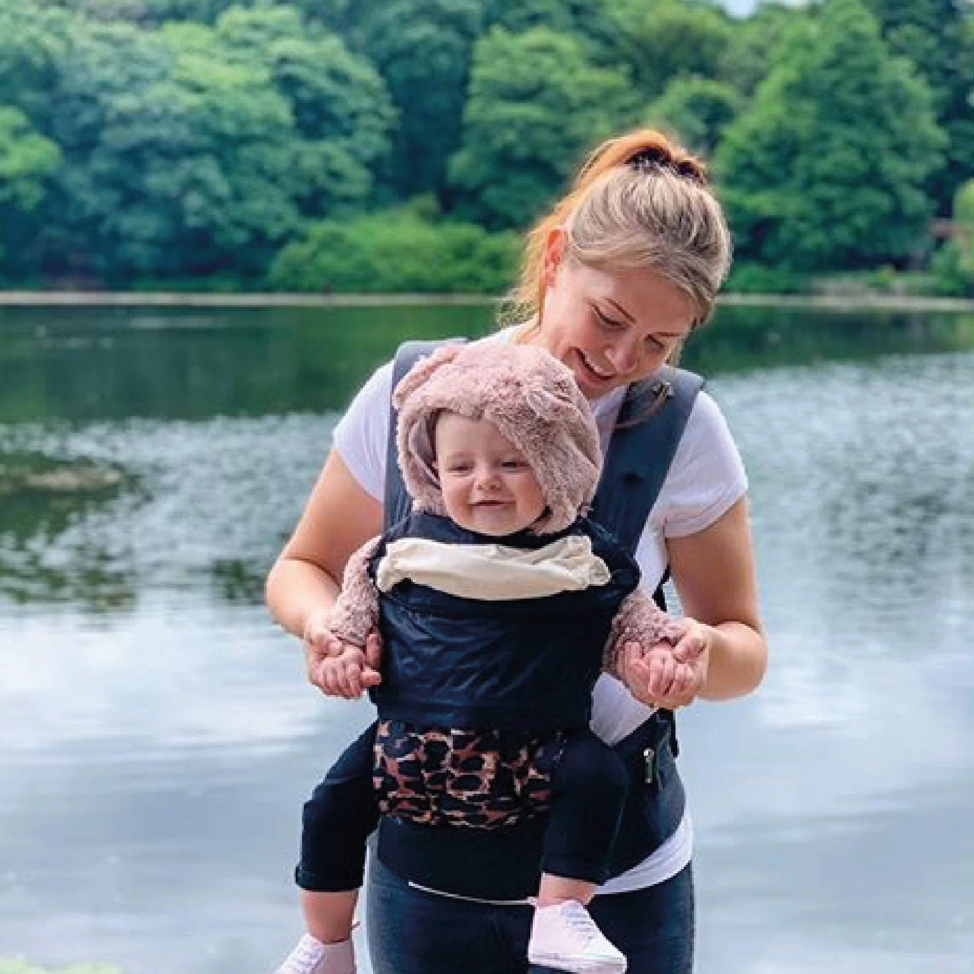 With a wide padded waist band, chest straps to prevent shoulder straps from sliding and padded shoulder straps, you'll be able to support your baby's weight on your hips to avoid any back or shoulder discomfort. The seat your little one will be sat in is comfy too and their legs will be perfectly positioned in the ergonomic frog-leg position which is more comfortable for your baby and for you when you're carrying them too.