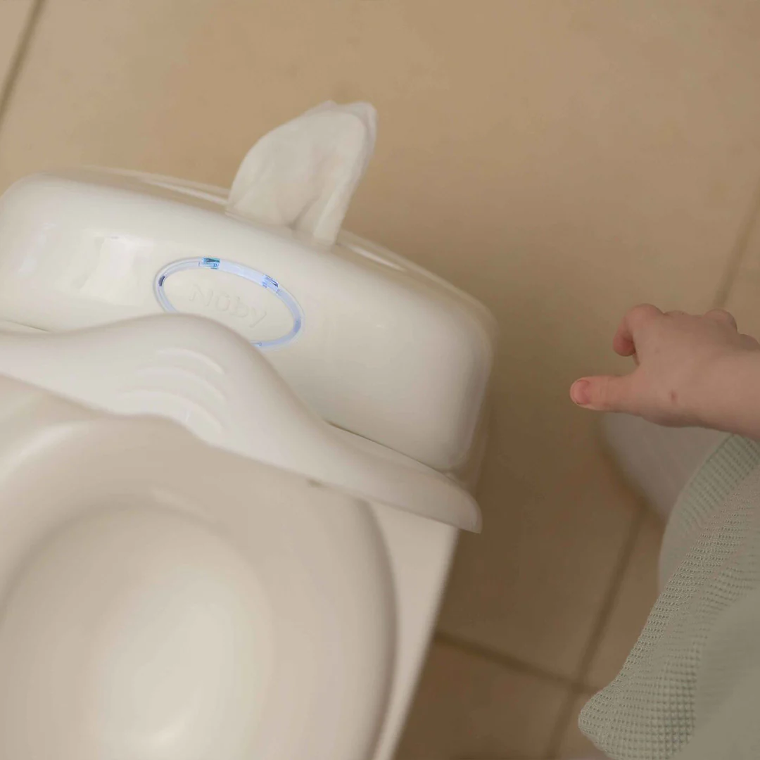 What else makes this training mini toilet potty awesome? Well, it's got a back that locks in place and fits full sized wipes, it features an anti-skid rubber base so it won't be sliding away while there's a training session taking place and the pot is removable for super easy cleaning.